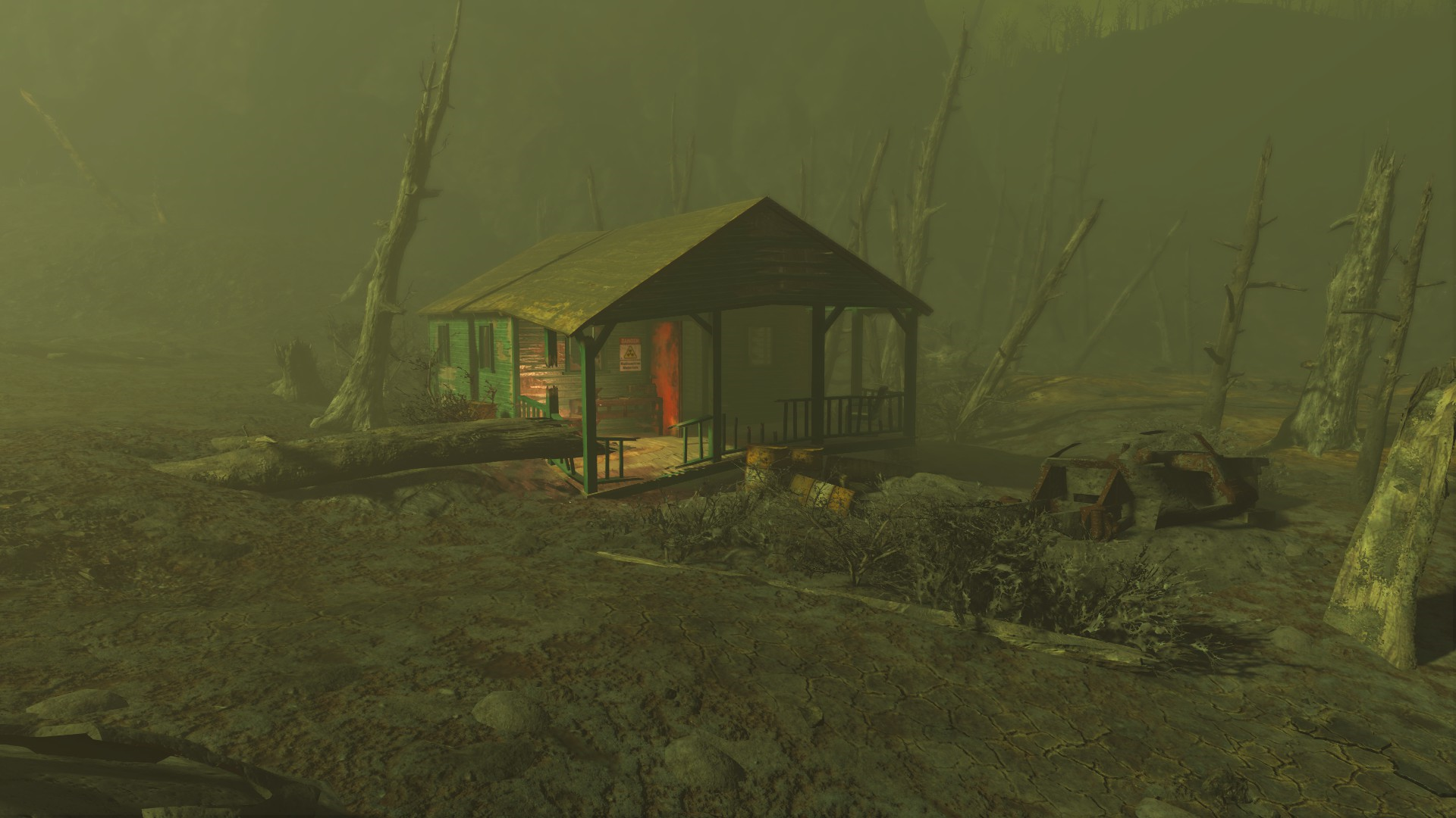 Tempat ini mengerikan karena jalan masuknya adalah sebuah gubuk, dan kalian akan menemukan seorang tengkorak yang tidak berhasil berlari menuruni pintu menuju bawah tanah. Bukan berarti hal tersebut penting, karena kalian melihat ke bawah dan melihat tengkorak lainnya. Entah disebabkan oleh radiasi atau orang itu duduk disana seumur hidupnya.